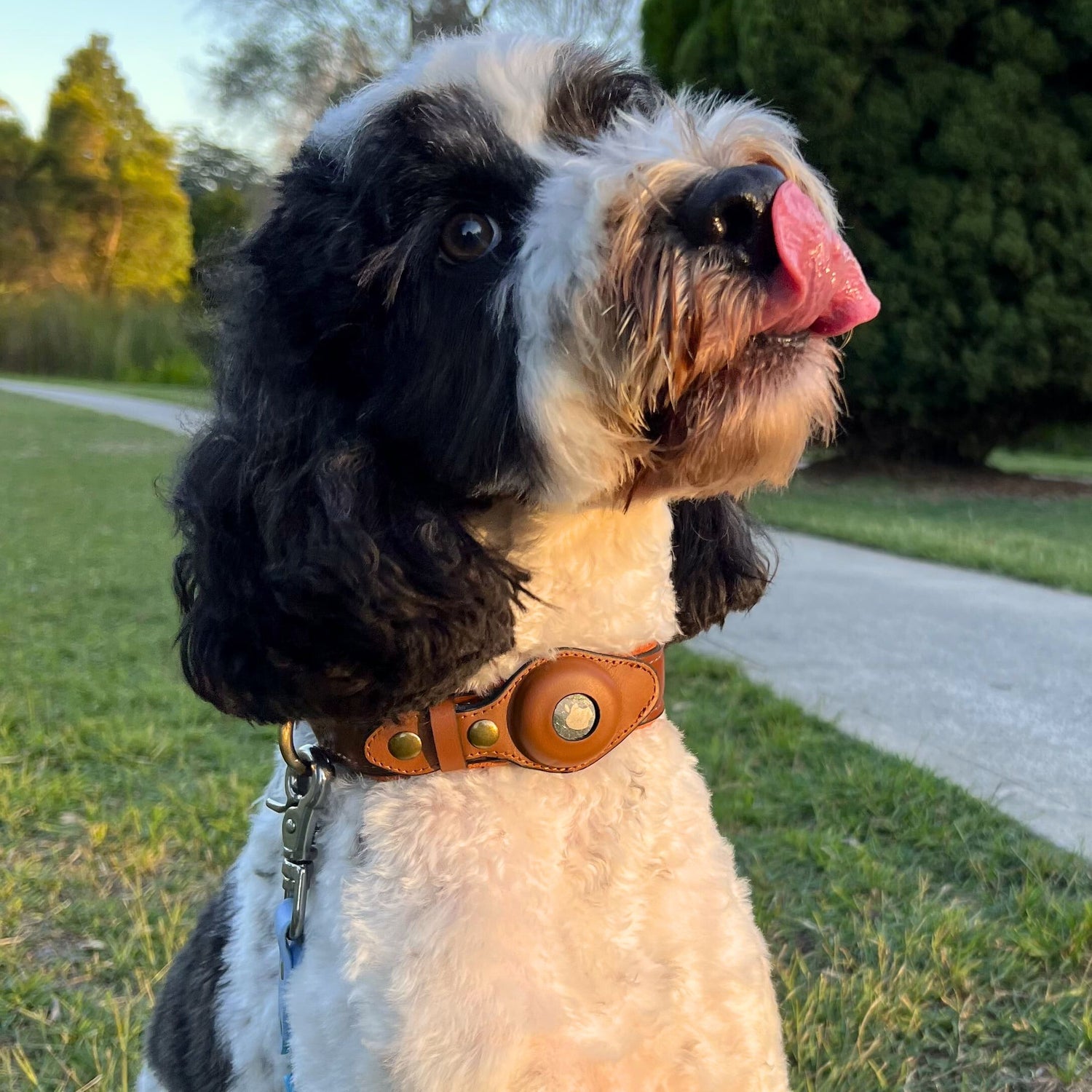 This collar securely holds your Apple Airtag - no dangling parts to get caught or chewed on.